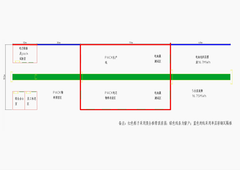 ①、墙面:采用7.5cm厚A级防火岩棉彩钢板隔断防火保温功能,双面0.35-0.5mm厚彩钢板,设计时考虑隔断方便二次拆装(墙面高度5米);